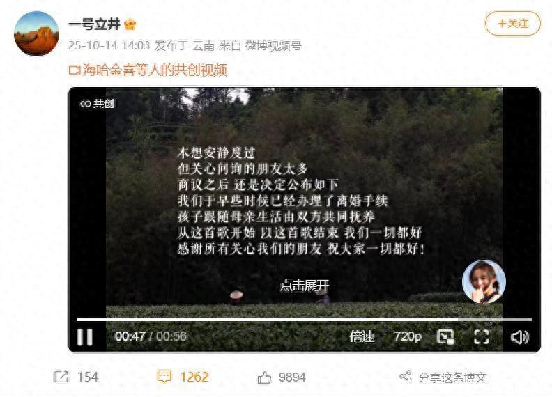 而海哈金喜在视频中则难掩疲惫,这种鲜明的心理状态对比,或许早已暗示了这段婚姻关系的实质性疏远,所以当离婚声明中提到女儿将由双方“共同抚养”时,外界的质疑声便不难理解,一个长期缺席的父亲实际的参与能力和时间投入,都让人打上了一个大大的问号。